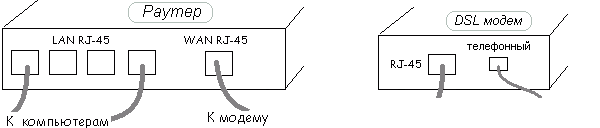 Высокоскоростное DSL/кабельное подключение интернету обычно идет через внешний модем. Это небольшая коробочка, подключаемая к телефонной линии или ТВ кабелю, и имеющая стандартный сетевой разъем RJ-45.